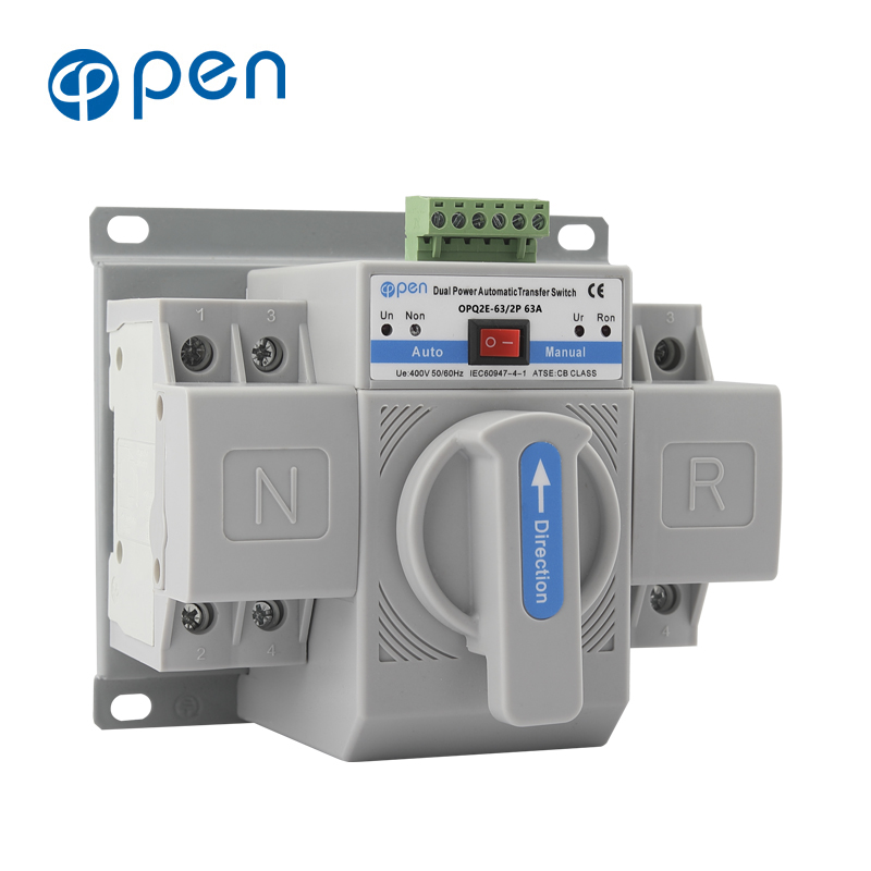 400V, rated current of 63A and below. Choice and conversion between two power supply according to the needs. ATS have protection