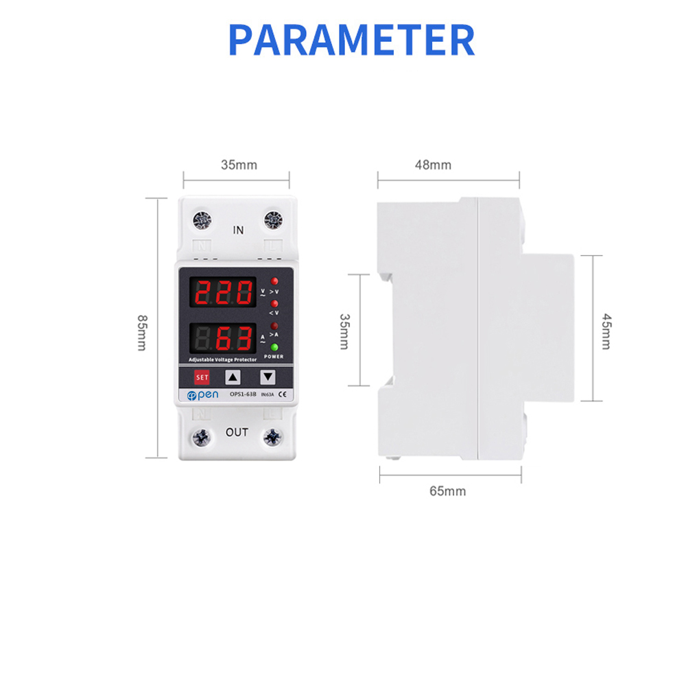 Dual Display 40A 63A 230V Din Rail Adjustable digital Over Under Voltage Relay Surge Protector Limit Over Current Protection